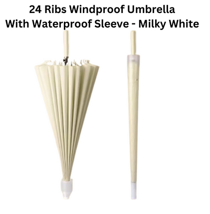 24 Ribs Auto Open Umbrella with Waterproof Sleeve - Milky White