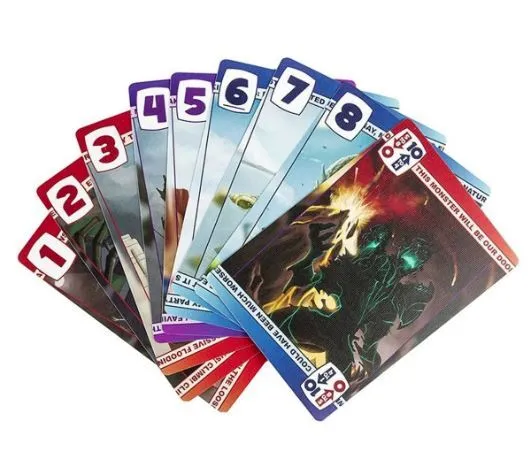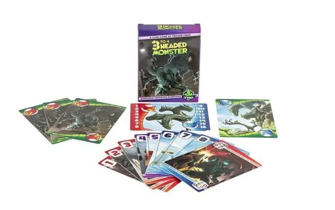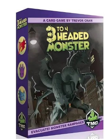 In 3 to 4 Headed Monster, each player controls the head of a very conflicted monster. Every round, players will discuss who should be in control of the monster's legs for the round. Once two players agree that they will be in control, they submit their cards, which are verified by a non-participating head, and everyone finds out whether the monster is looking for serenity... or looking for a fight! The game is over when one faction (peaceful head vs. destructive heads) manages to have control of the monster for too many rounds. (The number of rounds required depends upon the faction.)