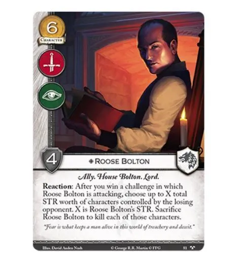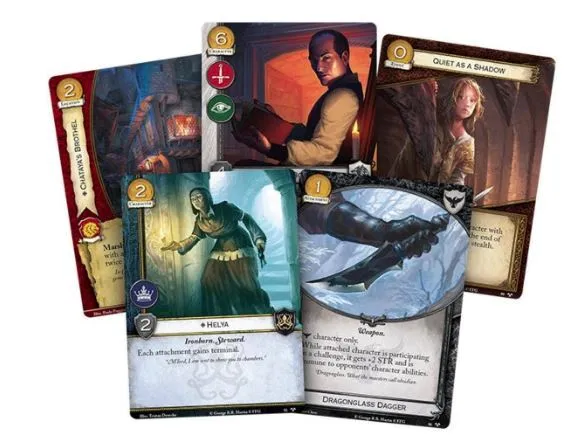 Now, you can enter your own name in contention for this sprawling castle with the Ghosts of Harrenhal Chapter Pack for A Game of Thrones: The Card Game. As the War of the Five Kings has touched every corner of Westeros, you’ll find plenty of new cards in this expansion that interact with the King trait, while other cards help you counter the drastic bloodshed of Valar Morghulis. Finally, you’ll encounter plenty of iconic characters in this Chapter Pack, including Roose Bolton, Brienne of Tarth, Craster, Ser Davos Seaworth, Joffrey Baratheon, and Myrcella Baratheon.