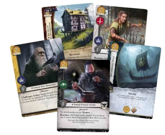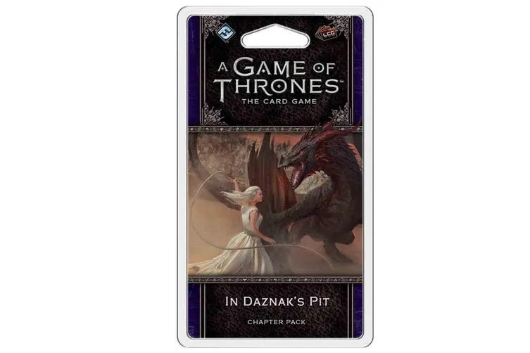 In Daznak’s Pit is the fifth Chapter Pack in the Dance of Shadows cycle for A Game of Thrones: The Card Game. Featuring three copies each of twenty new cards, this pack draws you into the world of George R. R. Martin’s A Song of Ice and Fire series where the key players in the game of thrones struggle to hold onto power as those they lead conspire against them. In the city of Meereen, Queen Daenerys Targaryen must fight for the loyalty of her people as the Brazen Beasts plot her downfall. In King’s Landing, Cersei Lannister must contend with the Faith of the Seven, battling against the power she helped them gain. And at the Wall, Jon Snow assumes the role of Lord Commander of the Night’s Watch, but as his brothers question his leadership, a sense of impending doom hangs in the frigid air. With the reintroduction of the shadows mechanic from A Game of Thrones: The Card Game First Edition, your games become further steeped in mystery as the tension and uncertainty threatens to unhinge your mind. With dangers lurking around every corner, you must either give in to the darkness within your heart or fall before those who do. How much of yourself are you willing to lose in order to win the Iron Throne?