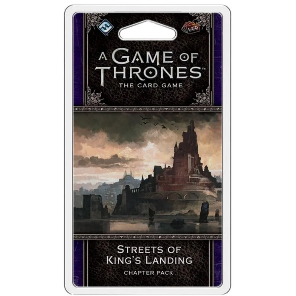 Streets of King's Landing is the third chapter pack in the Dance of Shadows cycle for A Game of Thrones: The Card Game. Containing three copies each of twenty new cards, this pack immerses you in the world of George R. R. Martin's A Song of Ice and Fire series. As the story progresses into the pages of A Dance with Dragons, those who would play the game of thrones find themselves helplessly surrounded by enemies. In King's Landing, Cersei Lannister struggles to hold onto power as the Tyrells and the Faith of the Seven split the loyalties of the capital's citizens. At the Wall, Jon Snow takes the role of Lord Commander of the Night's Watch, but has trouble balancing the demands of duty with those of morality. Finally, In Essos, Daenerys Targaryen has become the queen of Meereen, only to discover that the realities of rule differ greatly from expectations. The Dance of Shadows cycle reintroduces the player-favorite Shadow mechanic from A Game of Thrones: The Card Game First Edition. This mechanic increases the tension of your encounters, keeping games steeped in mystery and a constant fear of the unknown. As the sun sets on Westeros, you must decide how much of yourself you are willing to sacrifice in order for your plots to come to fruition.