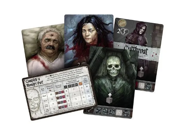 It's been twenty years since Victor Frankenstein died on a ship in the arctic, but his vengeful creature lives on, as does Robert Walton, the sea captain who vowed to kill the fiend before mercy stayed his hand. It's now 1819, and a sinister darkness descends upon the city of Paris. A mysterious benefactor of gigantic stature has emerged in the scientific community, never showing his face, claiming to possess the late Frankenstein's research. He sponsors a grand competition, offering an even grander prize: unlocking the mystery of mortality! Renowned scientists from around the world come to take part: some drawn to solve this eternal riddle, others coerced against their will. But a certain captain comes as well, one deeply suspicious of the secretive patron, hoping to finally fulfill his vow. Abomination: The Heir of Frankenstein is a competitive game of strategic monster building for 2-4 players, inspired by Mary Shelley's classic novel of gothic horror. In the game, the creature demands your help to accomplish what his own creator would not: to bring to life an abomination like itself, a companion to end its miserable solitude. Through worker placement and careful management of decomposing resources, you'll gather materials from the cemeteries and morgues around the city, conduct valuable research at the Academy of Science, hire less-than-reputable associates, and toil away in your lab — all in an effort to assemble a new form of life and infuse it with a "spark of being". Do well, and the creature may reward you during one of its surprise visits; do poorly, and you may come to regret not putting forth more effort. Narrative elements come into play throughout the game, guided by your decisions, leading to potentially unsavory outcomes. The game ends when you succeed in bringing your creation to life or when the Captain kills the creature, whichever happens first. Then the player with the most points fulfills Frankenstein's dark legacy, becoming his heir, for good or ill...
