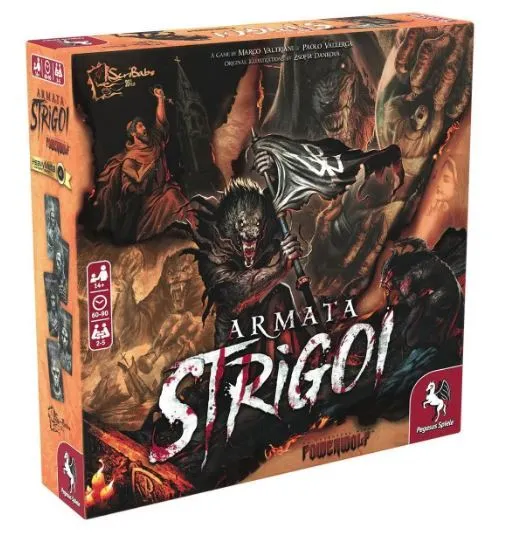 Armata Strigoi is a game in which the Powerwolf win or lose as a team, but each player makes their own decisions about their actions and movements. Each player represents one of the Powerwolf heroes which assault the Strigoi’s fortress as a single pack. In order to win they have to defeat both Vampires. However, the two foes are initially invulnerable and their vitality is intrinsically linked to their dwelling fortress, thus, upon the demise of the first vampire the whole structure will start to crumble and collapse on itself, making the victory a race against time!