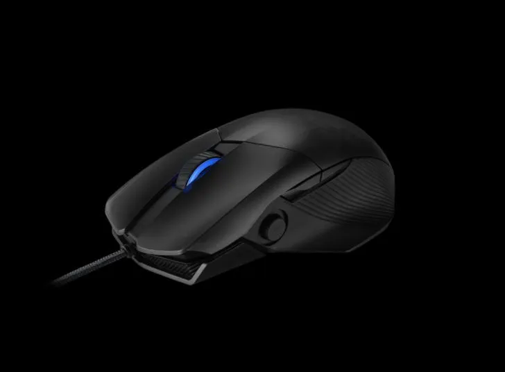 ROG Chakram Core gaming mouse featuring programmable joystick, advanced 16000 dpi sensor, push-fit switch sockets design, adjustable weight, stealth, instant screenshot and Aura Sync lighting.