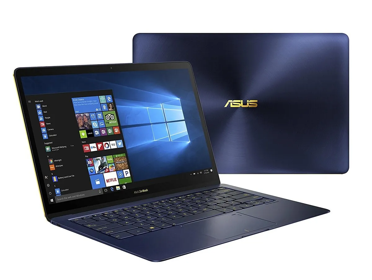 The Asus Zenbook 3 Deluxe UX490UAR 14" i7-8550U Laptop is a lightweight laptop that features a 14" Full HD display in a 13" chasis, running on an Intel i7-8550U that boosts up to 4GHz, Intel UHD Graphics 620 intergrated graphics, 16GB memory, 512GB PCIE SSD, 802.11ac wireless, Bluetooth 4.1, VGA web cam, biometric security with a fingerprint scanner, built-in speaker and microphone, illuminated chiclet keyboard and a 46WHrs battery.