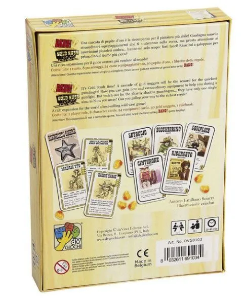 A cascade of gold nuggets will be the reward for the quickest gunslinger in Gold Rush, The latest expansion for Bang! Earn shiny gold nuggets and buy new equipment, while the new shadow-gunslingers keep you playing until the last bang!