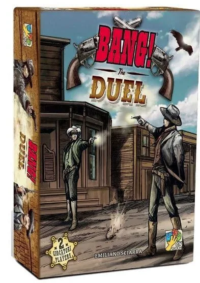 BANG! The Duel is a two-player version of BANG! in which each player chooses a certain number of characters from a personal deck, with one deck containing lawful individuals and the other one outlaws; the more characters you choose, the longer the game. Each player starts with two characters in play, with one being in front of the other.
