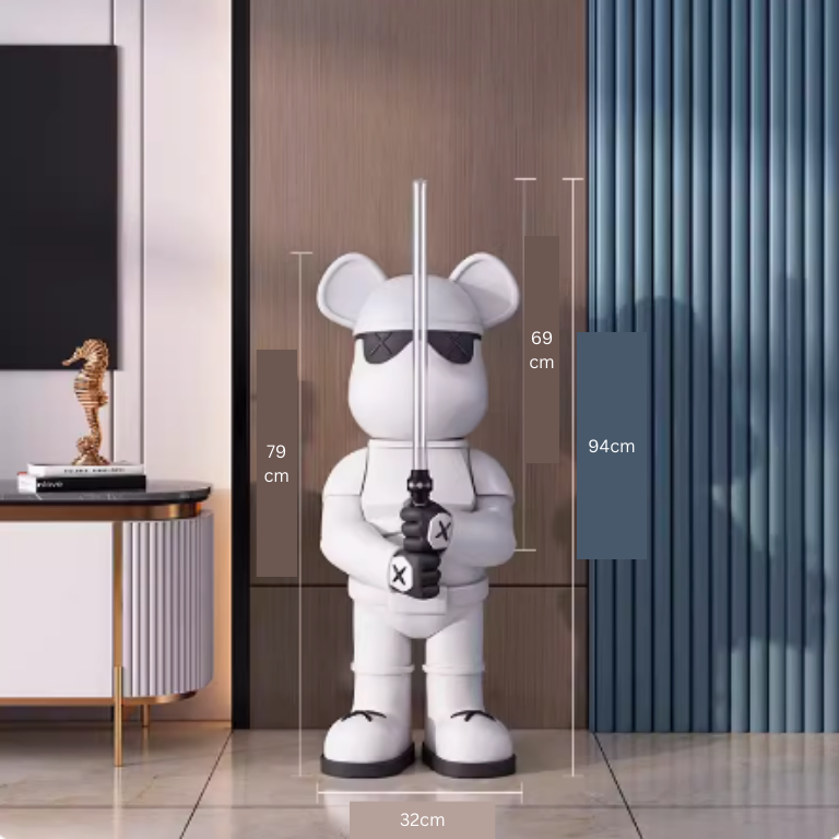 Introducing the Bearbrick Hajime Lightsaber White Figure – a stunning 94cm tall collectible with an integrated LED lightsaber. Crafted from durable resin, this figure showcases meticulous attention to detail and artistic excellence.