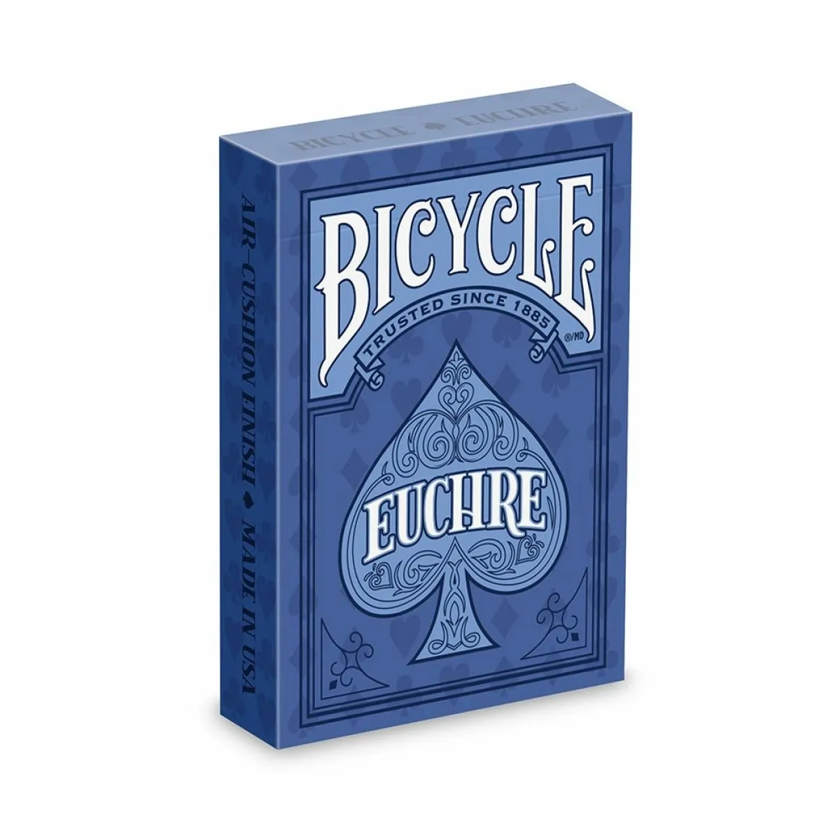 Euchre is uniquely American, created by colonists in the 1790s. Includes two special Euchre decks with 7-A suit cards plus various counter cards and two jokers. Featuring the Bicycle® Racer Back design cards, first introduced in 1895.