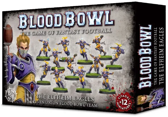 This multi-part plastic kit contains the components needed to assemble The Elfheim Eagles, an Elven Union Blood Bowl team. The team consists of 6 Linemen (4 of which are actually Linewomen), 2 Blitzers, 2 Throwers and 2 Catchers, each of whom are as impressively-cheekboned and beautiful as you might expect from an Elven team. The heads and shoulder pads are interchangeable between the miniatures, meaning your team can look unique.