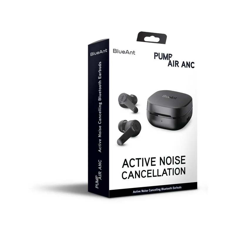 Blueant Pump Air ANC TWS provides up to 20dB noise cancellation and transparency, 30 hours of playback with the case and a super light earbud at only 4.5g each