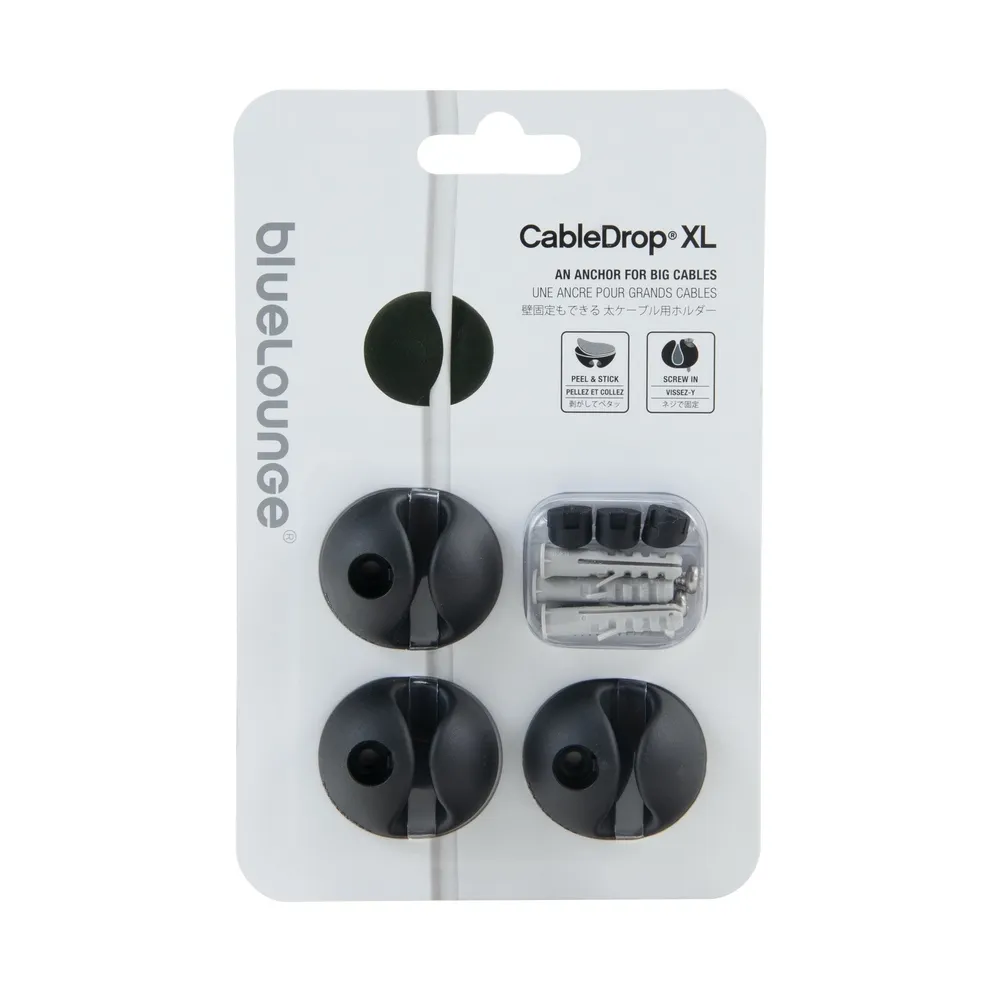The CableDrop XL is a mega version of the ever-popular CableDrop. The CableDrop XL comes with screws to secure your bulky cords to the wall, baseboards or wherever else you see fit. These heavy duty drops are sturdy enough to anchor down large cords, while still offering the ease and efficiency of the traditional CableDrop.