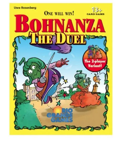 What was that thing about the gift horse? In this two-player variant of Bohnanza, both bean farmers give each other gifts of beans they can‘t use themselves – to make life harder for their opponent, if possible. Trying to fulfill their secret “bo(h)nus” requirements, they both need to keep a vigilant eye on the other player’s bean fields. Give as good as you get in Bohnanza – The Duel, there can be only one winner!