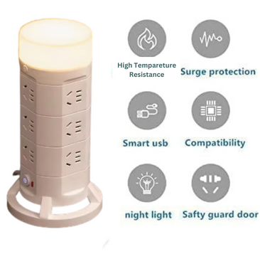 BullCube Desk Powerboard - 12 Universal Outlet, 2 USB+1 USB Type-C with 3 Color Dimming Light