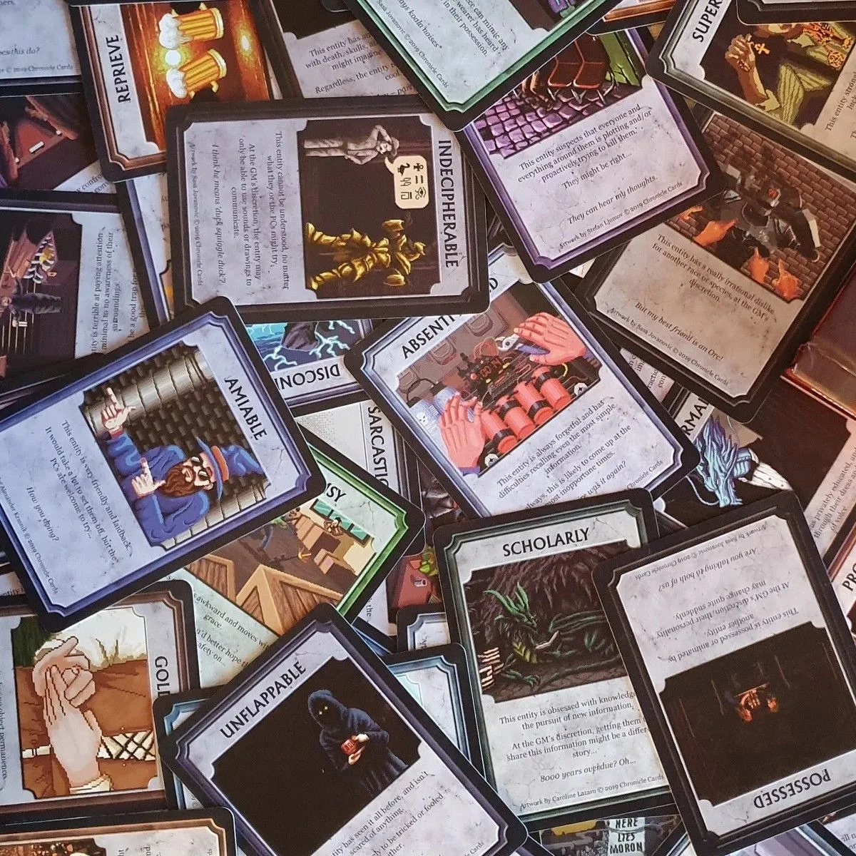 - 50 different cards to help you easily create engaging content for any RPG system!