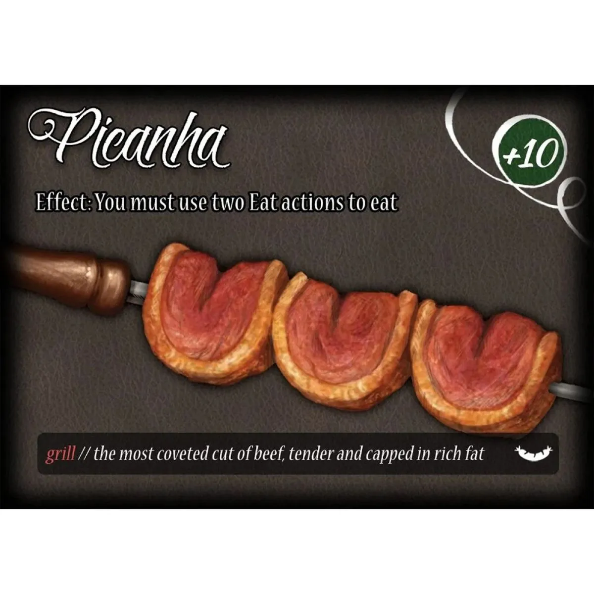Churrascaria: A Cutthroat Game of Gluttony is a fast-paced game of card collection where everyone is trying to eat all the succulent meats that appear on their plates while avoiding the equally delicious but ultimately less satisfying sides and desserts that just get in the way. All the while food theft, plate swapping, and general backstabbing keep the food flying. The person who consumes the most meat wins.