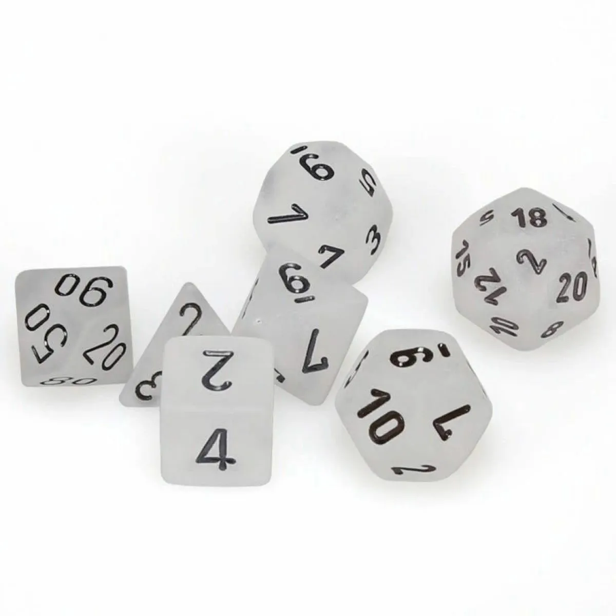 7-Die Set includes one of each D4, D6, D8, D10 0-10, D10 00-90, D12, D20.