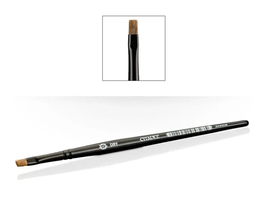 This small brush (S Dry) features a light ox hair and synthetic blend of bristles for stiffness and durability. The flat profile means a consistent coverage on raised areas - ideal for drybrushing!