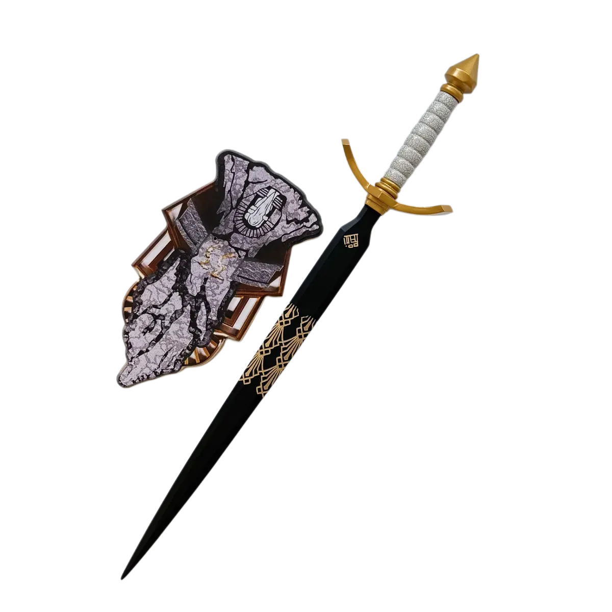 This Gustav Longsword from Clair Obscur: Expedition 33 features a zinc-alloy guard and handle finished with a golden crackle coating, giving the piece a unique, aged, and ceremonial appearance.