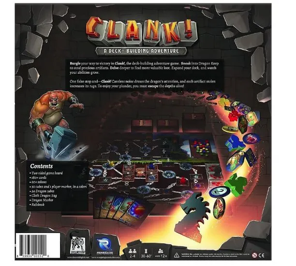 Burgle your way to adventure in the deck-building board game Clank! Sneak into an angry dragon's mountain lair to steal precious artifacts. Delve deeper to find more valuable loot. Acquire cards for your deck and watch your thievish abilities grow.