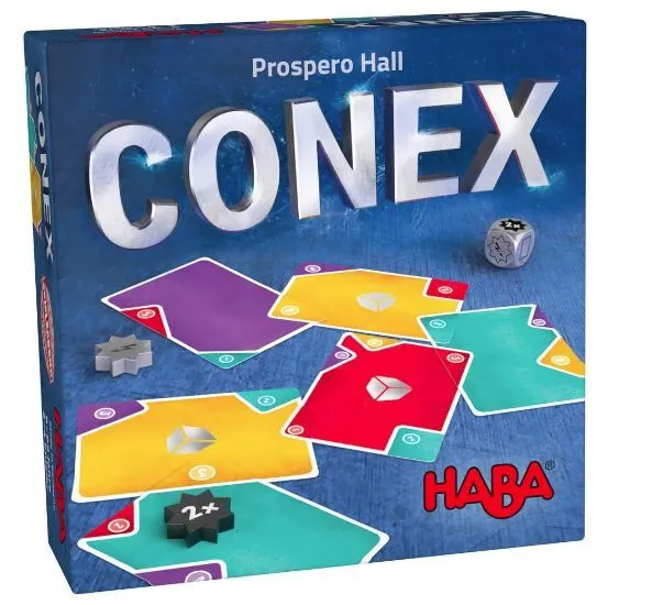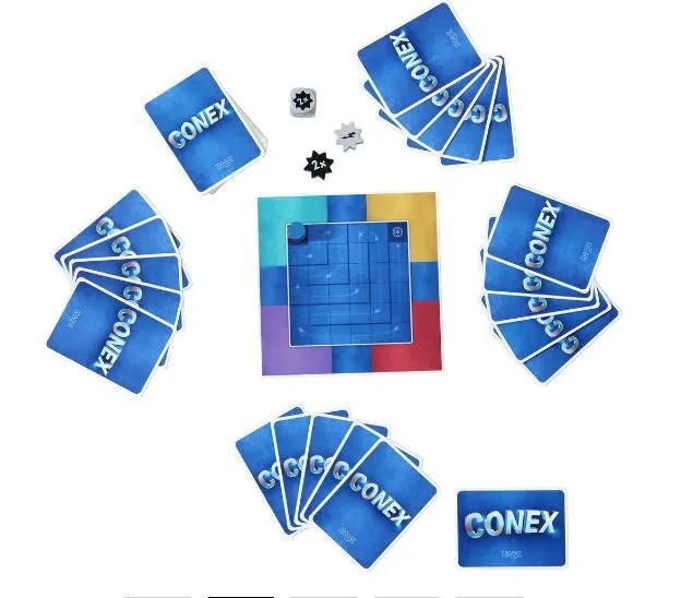 The players look for the best places to place their cards with the most valuable CONEX corners. Note: A change of perspective might be needed! They play any action stars you have earned. But only the player who manages to keep plan ahead will become the CONEX master. 52 cards (including action cards), 1 starting player card, 1 point tableau, 4 player markers, 2 action stars (2x star, lightning star), 1 symbol die, 1 set of instructions.