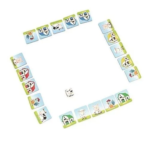 Nighttime is quickly approaching, and it's time to get the animals tucked into the barn. But what's going on? The animals keep running away. Are the other players causing this? A good memory and some luck with the die will help you in this crazy corralling game. The player who manages to corral all five of their animals into the barn first wins the game. Crazy Corral requires a good memory. While playing the game, players should try to remember where the other players' animals are as this becomes important during the game!