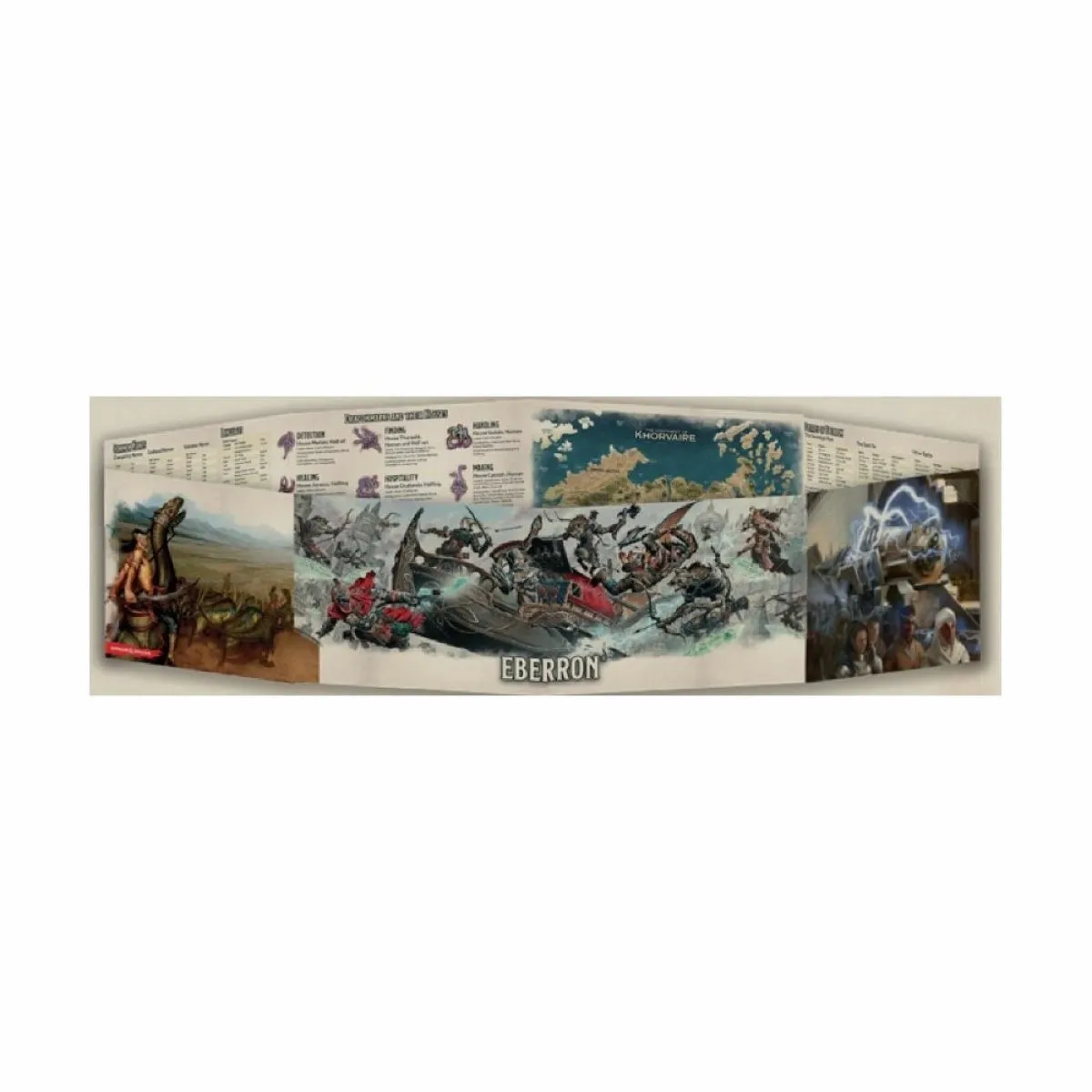 Designed specifically for use alongside Eberron, this new Dungeon Master Screen is the perfect guide to Khorvaire. Containing Dragon Marks and their houses, the Deities of Eberron, Goods and Services and a list of Common Names, this screen will help you bring the world of Eberron to life.