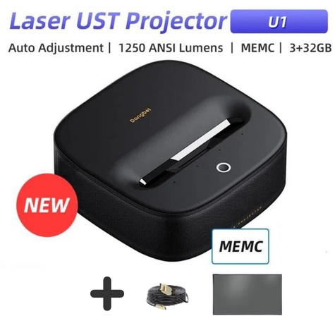 Experience cinematic brilliance with the Dangbei U1 1080P Ultra Short Throw Laser Projector Bundle. This all-in-one package includes an 88" projection screen and an HDMI 2.1 cable for a complete home entertainment solution. Enjoy stunning 1080P visuals at 1250 ANSI lumens, ultra-short-throw capability, and immersive multimedia support. Elevate your viewing experience with this innovative projector bundle that brings cinema-quality entertainment to your space