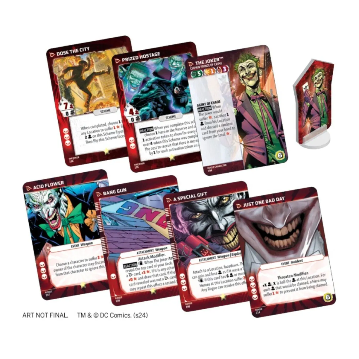BUILD YOUR TEAM! Pick iconic characters pulled from the pages of DC Comics and form your own squad of heroes or rogues in this action-packed, asymmetrical deck-building game from designer Damon Stone!