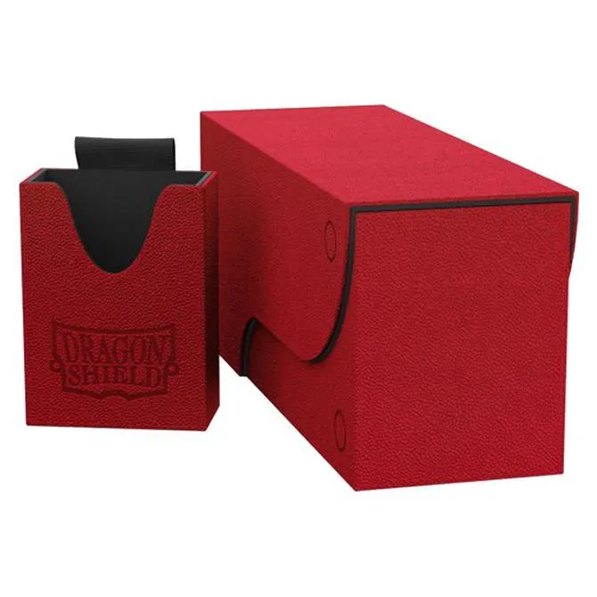 The Nest+ 300 fits more than 300 single-sleeved cards and includes a removable dice and token tray. Dragon Shield Nest+ 300 Box offers exclusive, high-end deck protection with a simple design and a strong magnetic seal. The Nest+ box includes a removable dice tray and features durable 'Dragon Skin' exterior and velvety soft interior, available in various colour combinations. The clever design can be reassembled in many ways making it a suitable card holder during play. A Nest+ 300 Box holds 325+ single sleeved cards or 260+ double sleeved cards. You can also fit Dragon Shield Strongboxes, Four-compartment-box, Deck Shells and Standard Size 100 ct. sleeve boxes inside.
