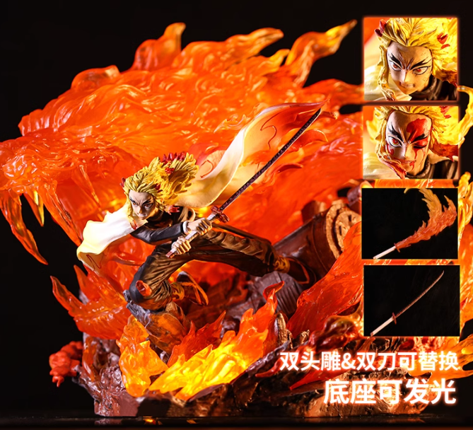 Demon Slayer Rengoku Kyojuro 2 Heads with Led Light GK Figure