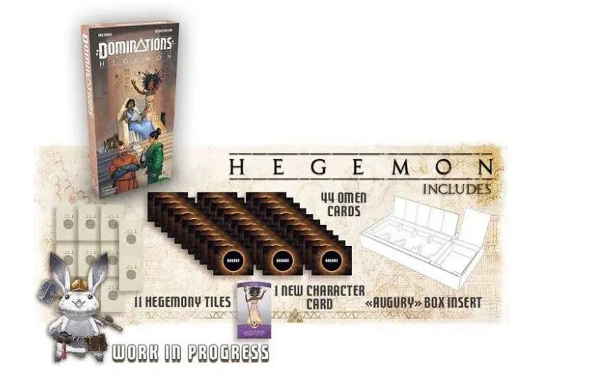 The Hegemon expansion brings two new mechanics to your games of Dominations : Hegemony tiles and Omen cards!