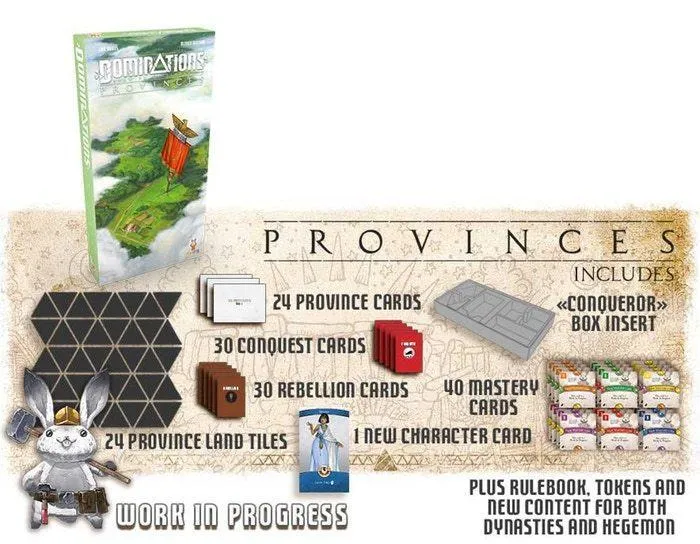 In Dominations the world revolves around you and your opponents as you vie to leave your mark on history. But what if you werent the only Nations out there? In Provinces youll discover new and unique peoples. You can benefit from their knowledge and resources by bringing them into your own Civilisation.ProÂvinces is an expansion for Dominations where your growing civilisation will come into contact with other nations, in the form of a new selection of land tiles.Conquer and integrate these new peoples into your empire – whether it be through trade, culture or more aggressive means. Once under your control, these new territories are played like regular land tiles, as well as granting you unique rewards! You can also call upon the aid of the Spy, replacing the Diplomat and giving you an edge when dealing with these new civilisations.