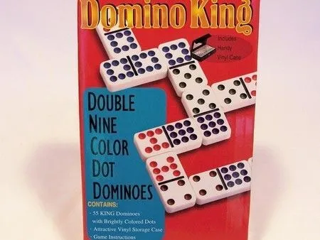 Double Fifteen white dominos with coloured dots. Comes in a vinyl case for easy storage