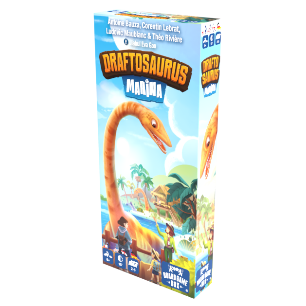 This expansion for Draftosaurus adds a new double-sided board that each player can combine with their existing park to add a new river zone. Plesiosaurus are the only dino-meeples that can be placed in this part of the river, earning points at the end of the game. To move your plesiosaurus further down the river and earn more points, you must place specific other species in your park to unlock the dams one by one!