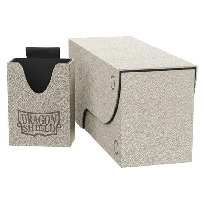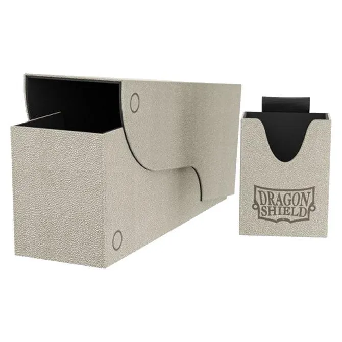 The Nest+ 300 fits more than 300 single-sleeved cards and includes a removable dice and token tray. Dragon Shield Nest+ 300 Box offers exclusive, high-end deck protection with a simple design and a strong magnetic seal. The Nest+ box includes a removable dice tray and features durable 'Dragon Skin' exterior and velvety soft interior, available in various colour combinations. The clever design can be reassembled in many ways making it a suitable card holder during play. A Nest+ 300 Box holds 325+ single sleeved cards or 260+ double sleeved cards. You can also fit Dragon Shield Strongboxes, Four-compartment-box, Deck Shells and Standard Size 100 ct. sleeve boxes inside.