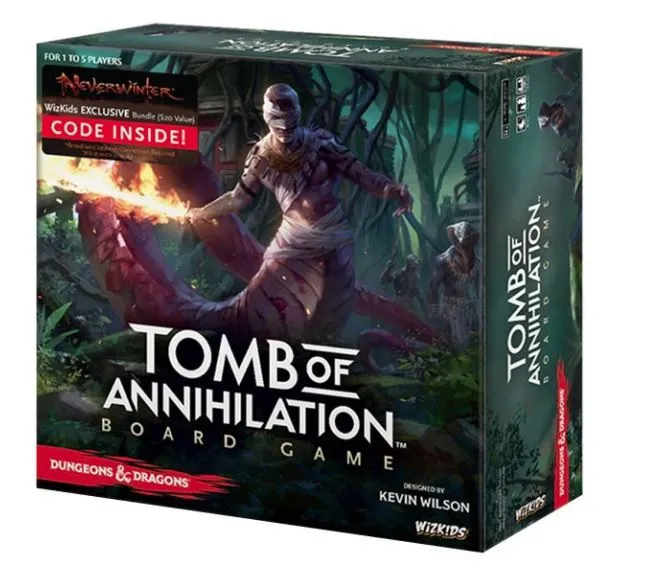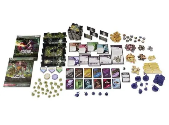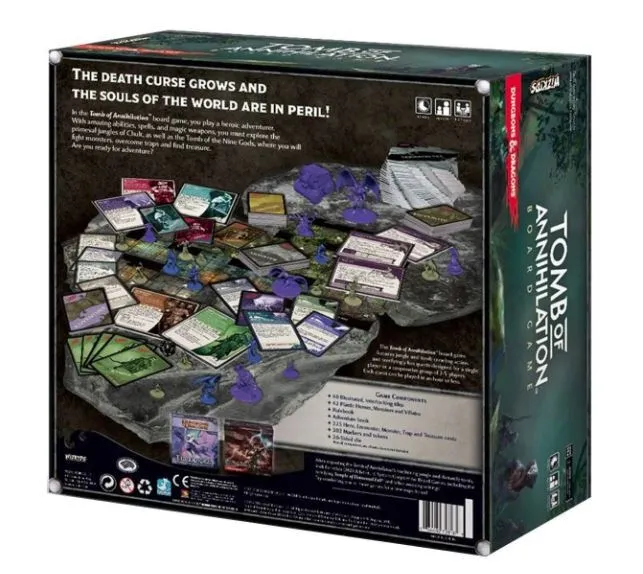 In the Tomb of Annihilation Adventure System Board Game, you play a heroic adventurer. With amazing abilities, spells, and magic weapons, you must explore the jungle of Chult, as well as the Tomb of the Nine Gods, where you will fight monsters, overcome traps and find treasure. Featuring: 42 Single-Colored Miniatures 3 Misty Arch standees 2 Devil Face standees 5 Hero tiles 4 Villain tiles 1 rulebook 1 adventure book 20-sided die 40 interlocking Dungeon tiles 5 double-sized interlocking Special tiles 225 cards Over 300 tokens Following in the path of the other critically-acclaimed D&D board games, Tomb of Annihilation features multiple scenarios, challenging quests and game play designed for a single player or a cooperative group of 2-5 players.
