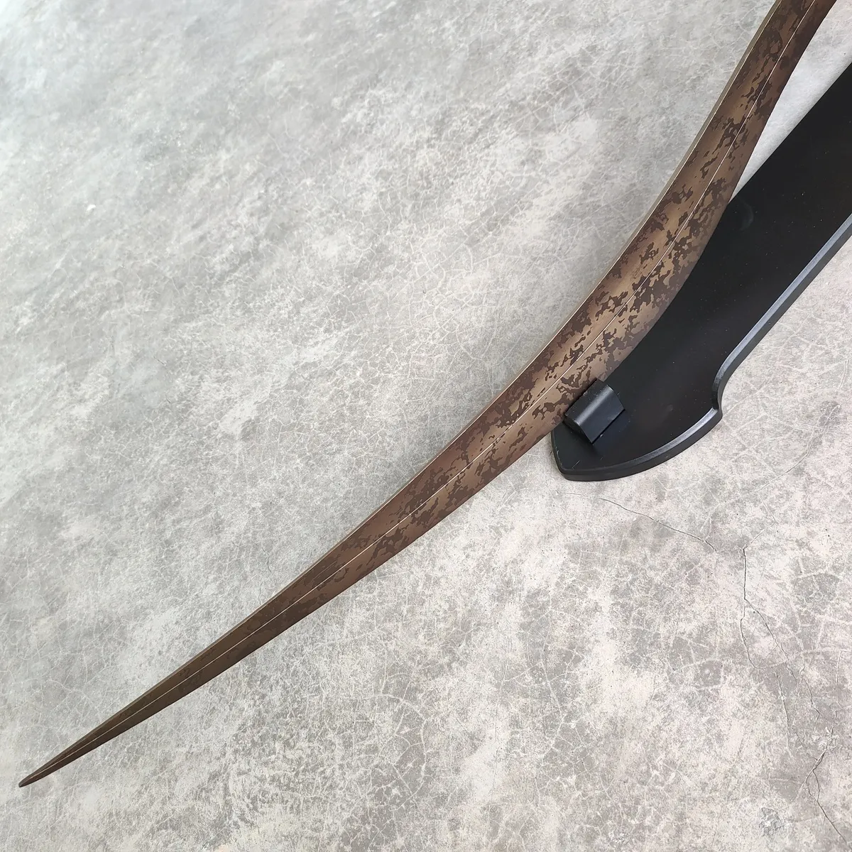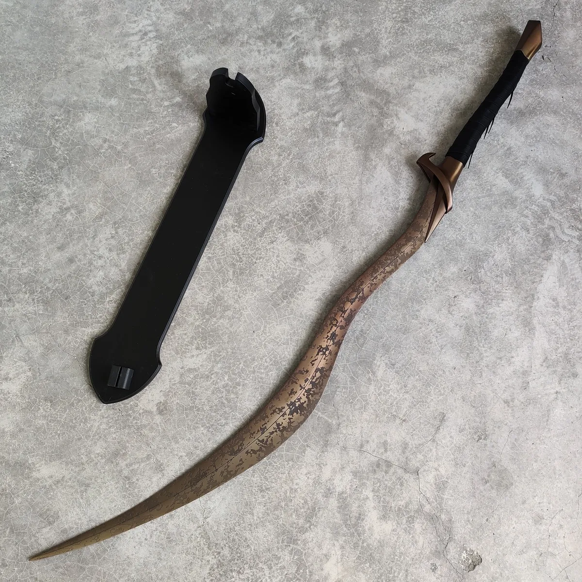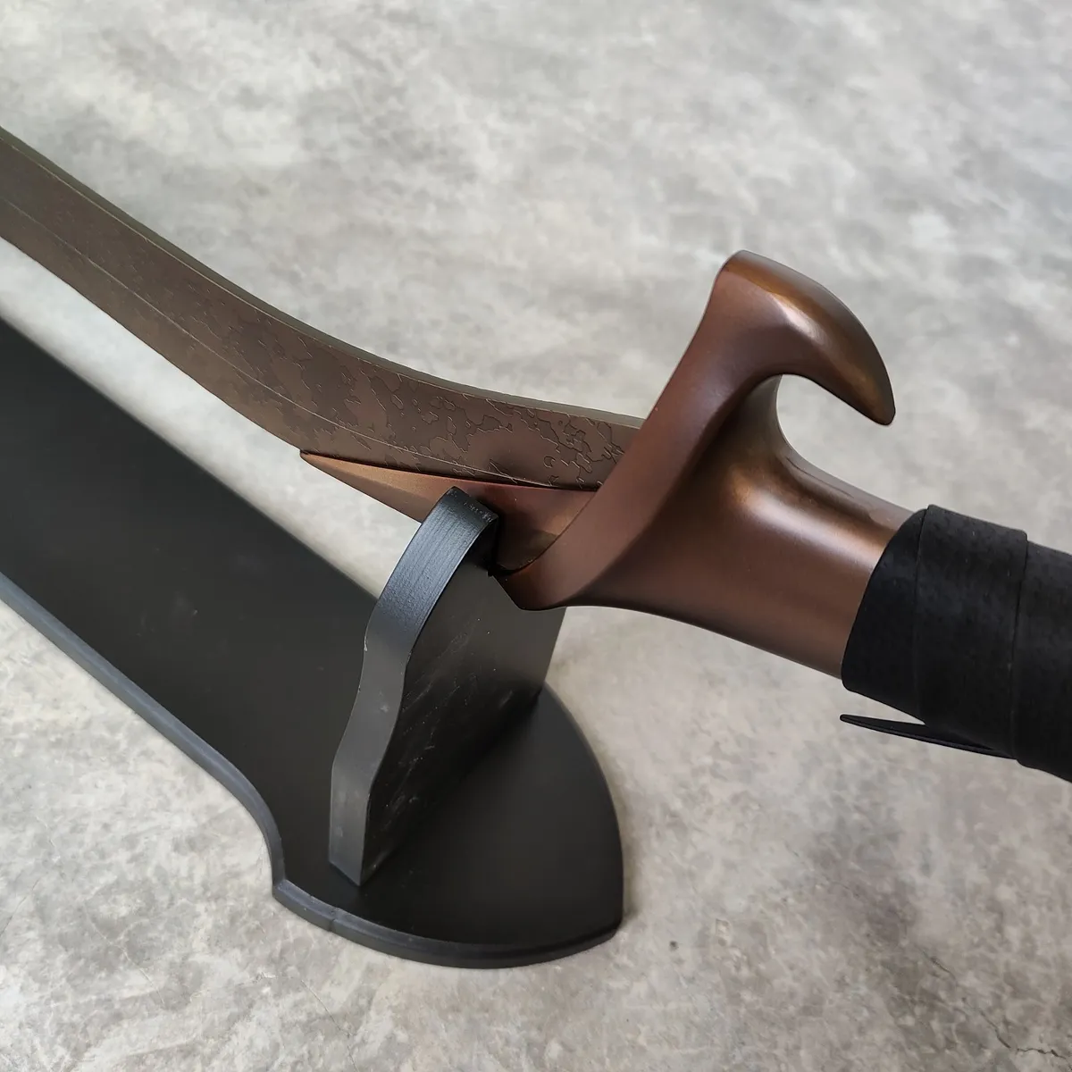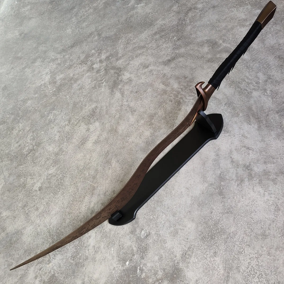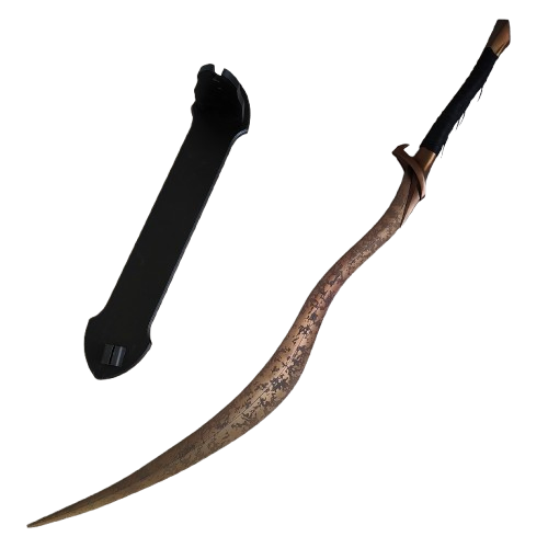Designed with blunt edges for safety, this replica ensures that you can display or wield it without any risk. The Bloodhound's Fang features a unique curved blade with intricate details, staying true to the in-game version, and it comes complete with a stand for a proud display. Whether you're completing your cosplay or adding to your Elden Ring collection, this sword is a must-have piece.