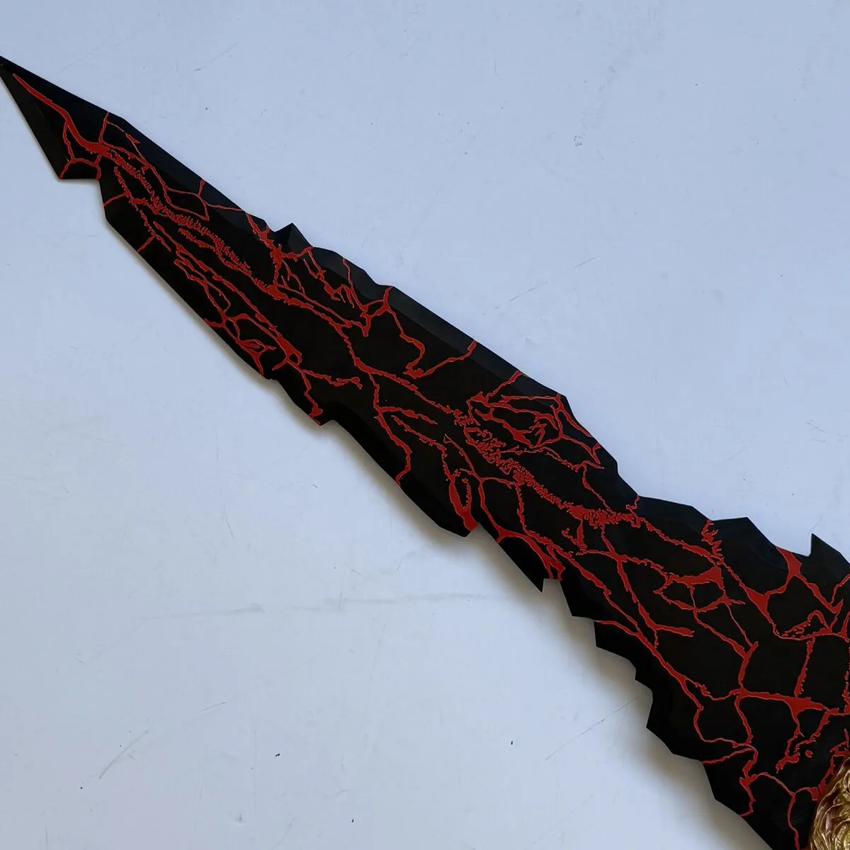 Forged from high-quality stainless steel, the replica captures the distinctive jagged shape and dark, battle-worn aesthetic of the original. The long, two-handed grip is wrapped for comfort and authenticity, while the intricate runic details along the blade highlight its cursed legacy. A display-worthy piece, this replica perfectly balances durability with artistry, making it a must-have for collectors, cosplayers, and fans of FromSoftware’s masterpiece.