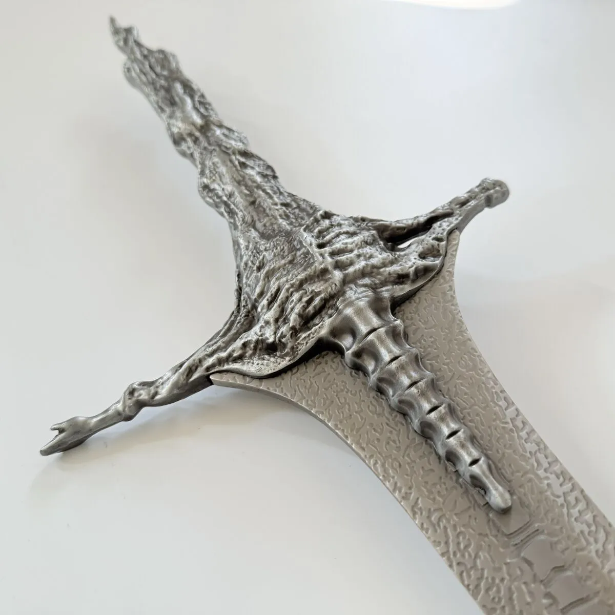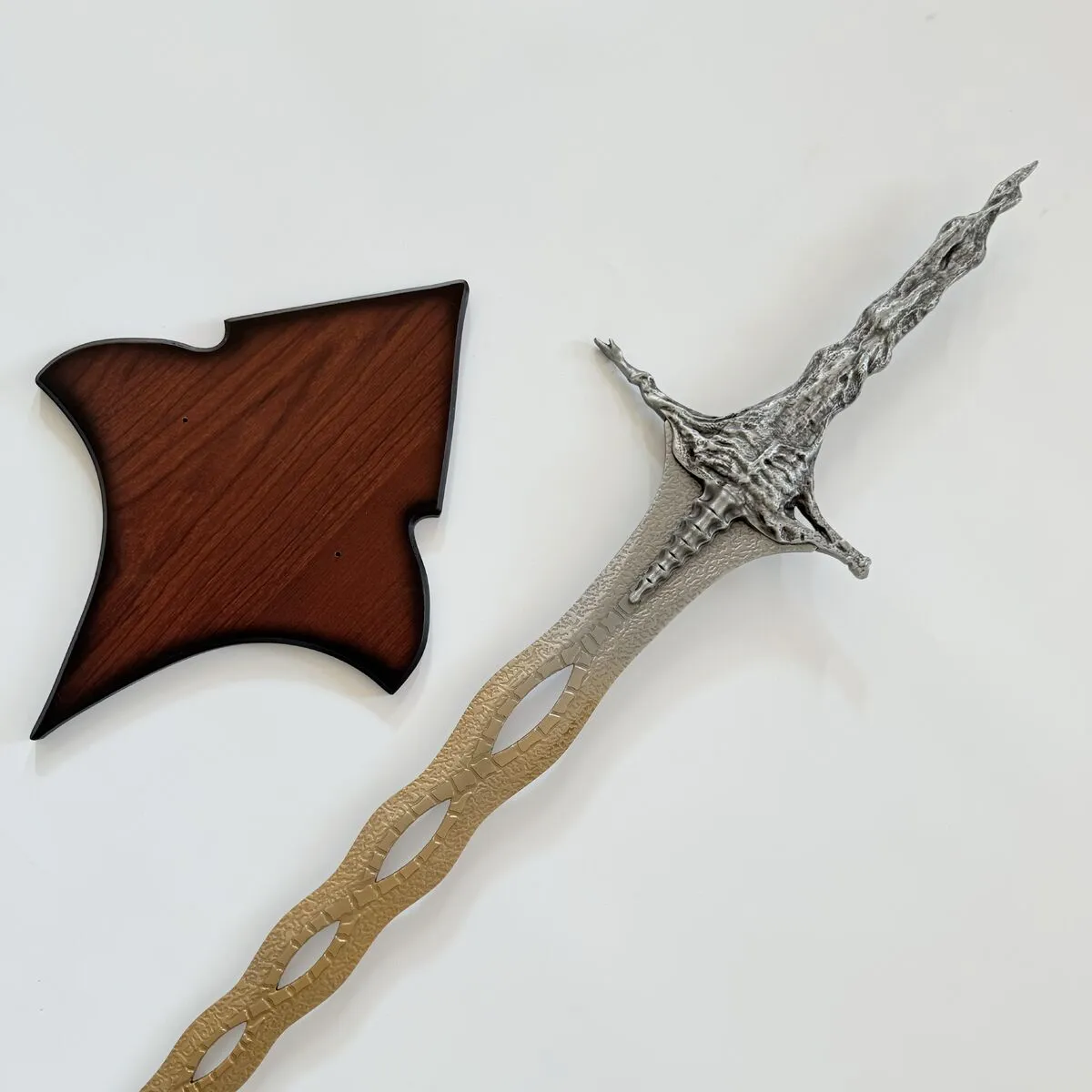 Designed with blunt edges for safety, this sword is perfect for display or cosplay without any risk. The wall plaque included provides an elegant way to showcase this iconic weapon, making it a centerpiece in any Elden Ring collection. The sword's intricate details, from its ornate guard to the beautifully crafted blade, capture the essence of the Sacred Relic Sword as seen in the Lands Between. Add this masterpiece to your collection and bring the grandeur of Elden Ring into your world.
