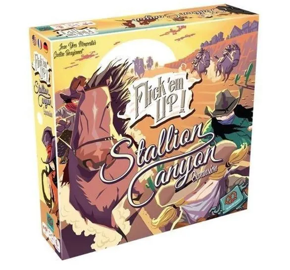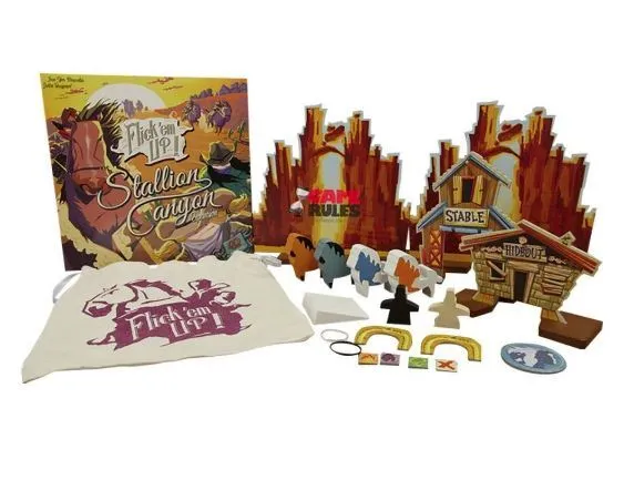 What’s a cowboy without his horse, you ask? Well, ask no more for Flick 'em Up! Stallion Canyon, the first expansion for Flick 'em Up!, introduces dashing horses! Two cowgirls also join the gang amongst many new elements that will have you conquering brand new towns and scenarios for more flickin' fun!