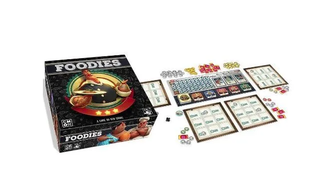 The food court: It's a haven for hungry and thirsty patrons as they go about their lives, but for some, the food court is life. Every restaurant wants to attract the most customers, tailoring their menu and hiring famous chefs to work in their kitchen. In the end, only one will be the most successful. You wanna grab a bite to eat? In Foodies, players take on the role of managers in a food court. During the game, they will add new dishes to their menu, connecting the stars between different dishes. These recipes come from all over the world, granting different bonuses when added. What's more, players can hire chefs to work in their kitchens, including special, prestigious chefs who are the best in the business. In the end, the player who gains the most popularity will be declared the food master and win the game.