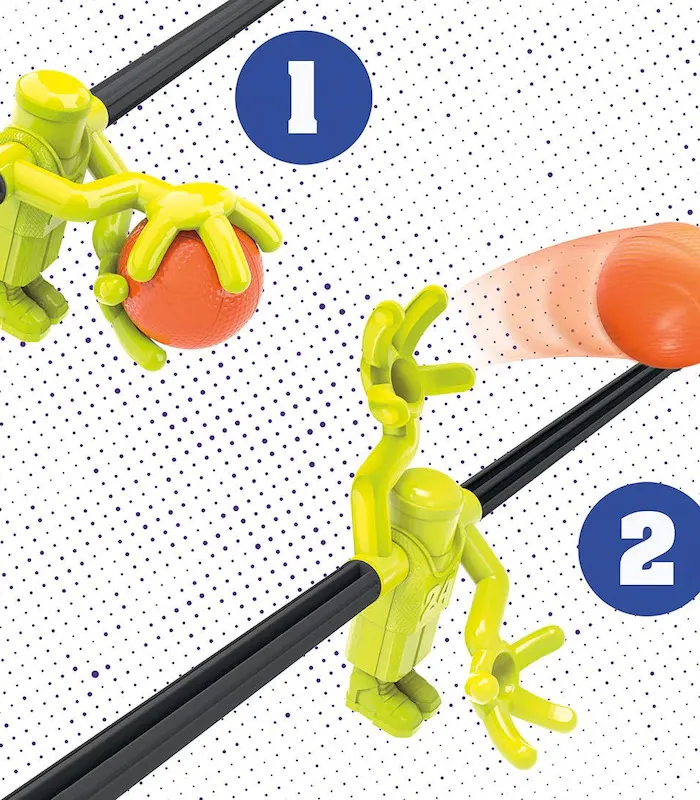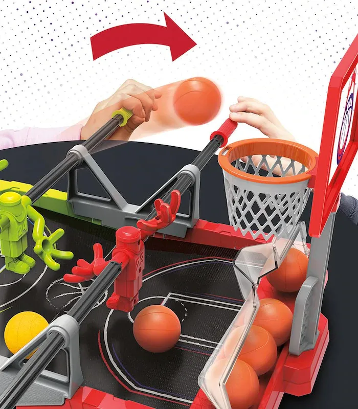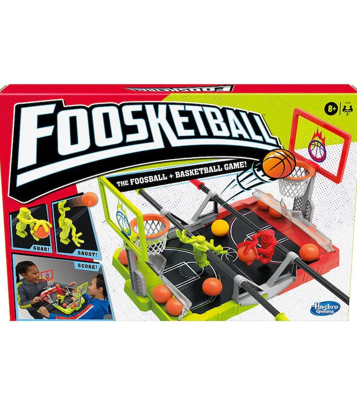 GRAB, SHOOT, SCORE: The Foosketball tabletop action game is an exciting combination of foosball and basketball. Players grab the ball, aim, and shoot it into their opponent's basket