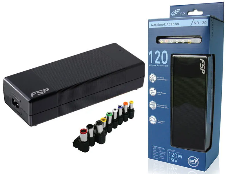 The FSP NB 120W Notebook Power Adapter produces over 88% high efficiency power output for laptops and provides safe output to suit the requirements for laptops to offer complete protection onto the devices.