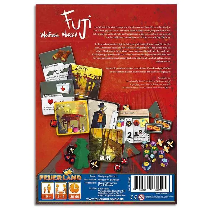 In Fuji, you play as a group of adventurers on their way to Japan‘s most famous volcano, Mount Fuji. But just before you arrive at your destination, the earth begins to shake and the volcano erupts! Now your group must escape the deadly lava flows as quickly as possible to reach the safe village.