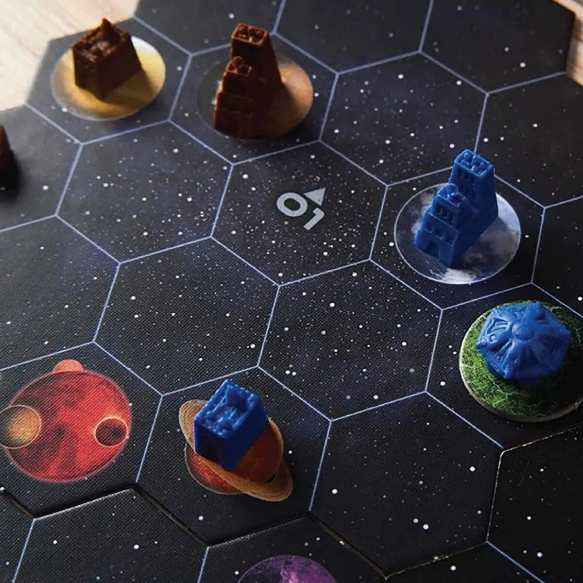 • Includes ten modular space sector tiles that allow you to create a new galaxy every time you play