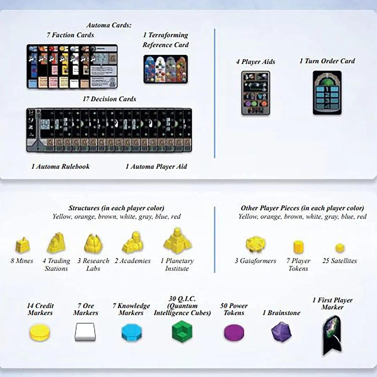 Set your sights on distant stars and strive to colonize the galaxy in Gaia Project, the follow-up to the smash hit Terra Mystica! True to the foundations that made Terra Mystica a massive success, this box invites one to four players to forge their own galactic empires. Explore the vast reaches of space and convert planets to meet your faction’s unique environmental needs as you seek to tighten your grasp on the galaxy. Fourteen unique factions stand ready to boldly take their first steps into the cosmos while building structures to generate resources, researching new technology, and uniting planets to form powerful federations. Chart your course and remake planets as you see fit in Gaia Project. In the end, only the most advanced faction will win.