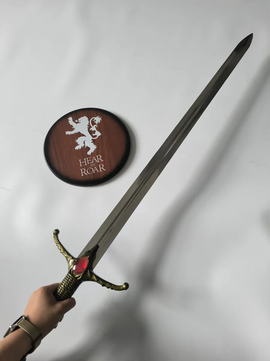 Game of Thrones Joffrey Baratheon's Widow's Wail Sword with Wall Plaque – a remarkable replica of the sword once wielded by King Joffrey Baratheon in Game of Thrones. This elegant and intricately detailed sword is perfect for collectors and fans of the series, capturing the regal design of the infamous weapon.