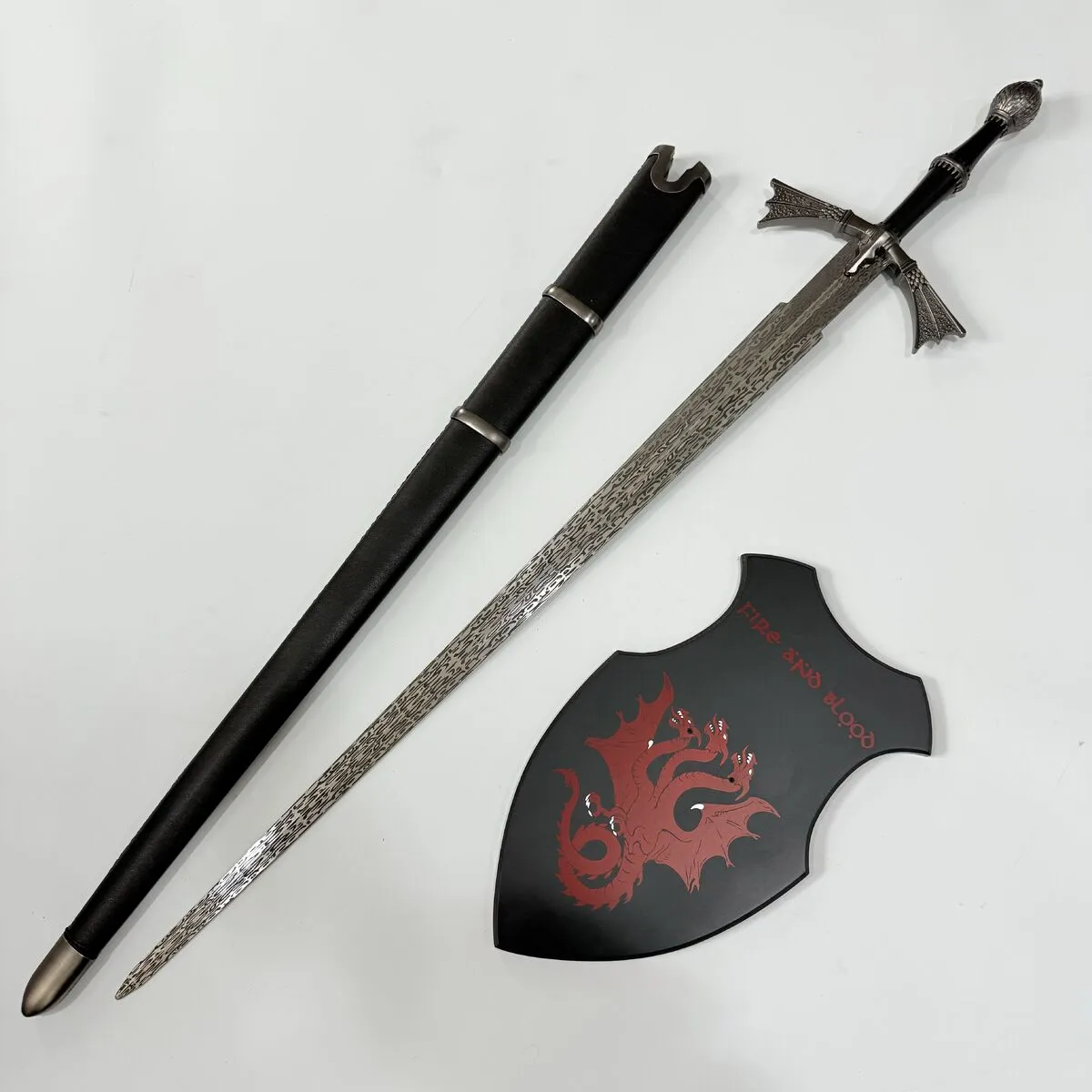 Game of Thrones Targaryen Family's Black Sister Sword with Wall Plaque – a regal and intricately designed replica, embodying the power and legacy of House Targaryen. This beautifully crafted sword is perfect for collectors and fans of Game of Thrones, reflecting the fiery strength of the Targaryen bloodline.