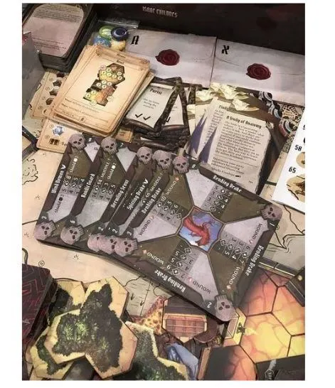 Gloomhaven is a game of Euro-inspired tactical combat in a persistent world of shifting motives. Players will take on the role of a wandering adventurer with their own special set of skills and their own reasons for travelling to this dark corner of the world. Players must work together out of necessity to clear out menacing dungeons and forgotten ruins. In the process they will enhance their abilities with experience and loot, discover new locations to explore and plunder, and expand an ever-branching story fueled by the decisions they make.
